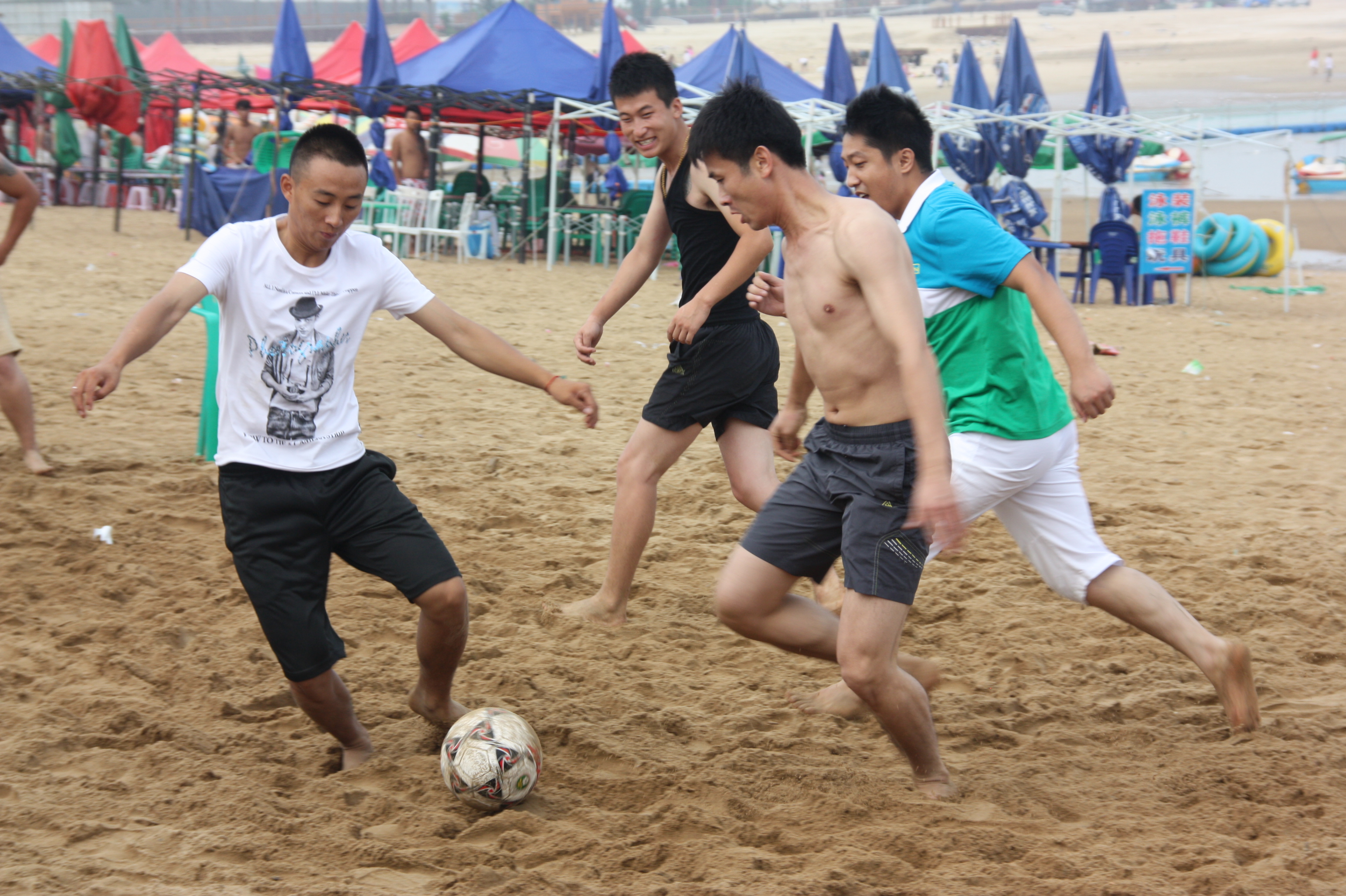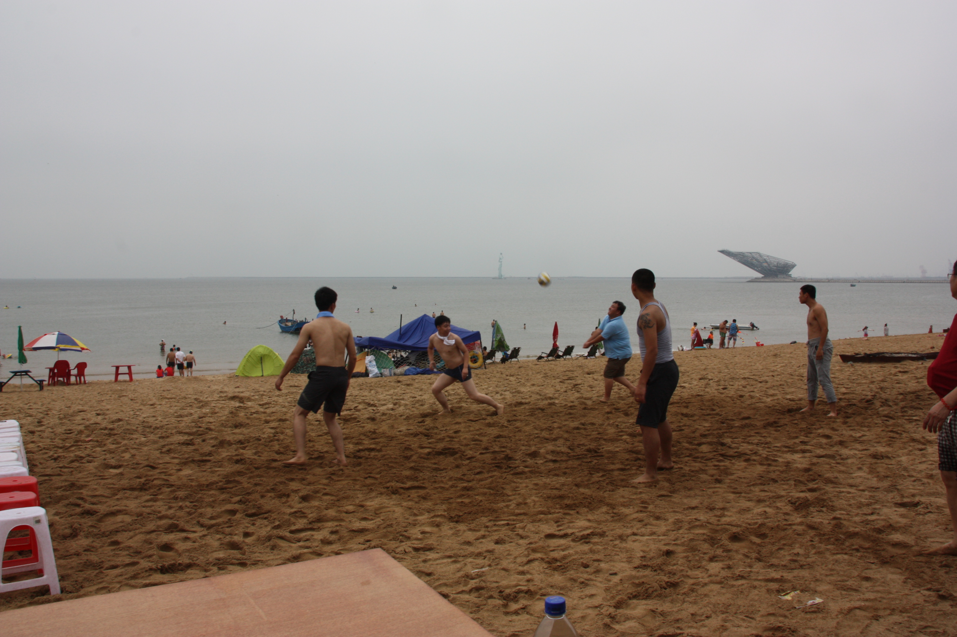 旅游时组织的沙滩足球赛